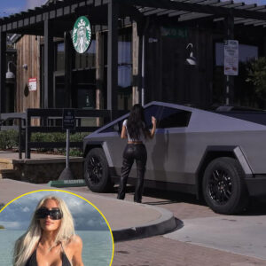 EXCLUSIVE: Kim Kardashian showcases her toned midriff as she steps out of her massive $100K Tesla Cybertruck while on a coffee run in…