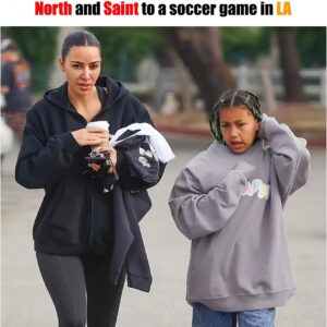 Kim Kardashian Cuts A Very Casual Figure In A Zip-up Hoodie While Taking Her Daughter North And Son Saint To A Soccer Game…