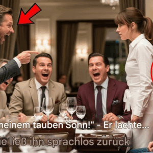O bilionário apontou para mim e riu. „Você, uma garçonete inútil tentando se comunicar com meu filho?“ Os amigos dele se juntaram, zombando…