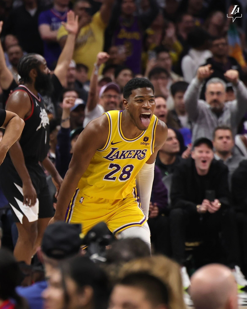 When the Clippers tried sending a second defender at him in the fourth period, he fed teammates such as Russell and Hachimura for open shots, giving him four assists in the period and eight for the game.