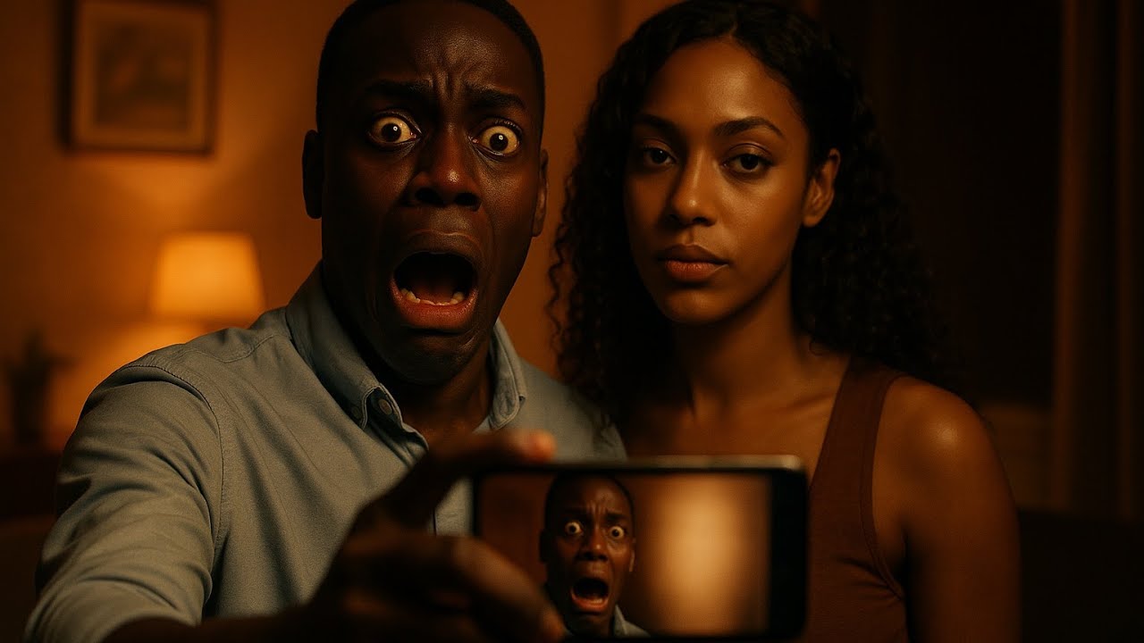 Colocaram Alain e Nadia à frente dele. O fotógrafo ajustou a máquina. Franziu o sobrolho. “Não se mexam.” Tirou uma foto. Depois outra. “Estranho… Deve ser um erro.” No espelho via-se a sala, os convidados, as decorações… mas Nadia aparecia apenas como uma mancha difusa, uma sombra.