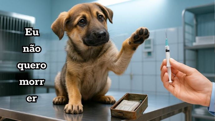 A agulha estava a poucos centímetros de distância quando Jax levantou a sua pata trêmula. O corpo dele tremia, mas os olhos… os olhos diziam tudo.