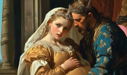 “Minha querida criança,” disse ele, ajoelhando-se diante da cadeira dela, como havia feito durante o primeiro encontro deles. “Receio que as nossas circunstâncias tenham se tornado difíceis. Há aqueles que questionam meu direito de governar, que buscam derrubar a paz que construímos com o reino de seu pai.”
