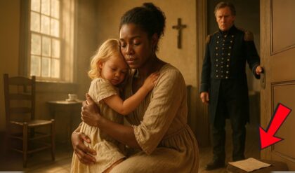 Isabela Montoya observava do corredor superior. Seu vestido se movia com o vento, o rosto pálido, as mãos escondidas sob o xale apertavam algo: o documento original de liberdade de Julián, que decidira não esconder mais. Sabia o que seu marido planejava.