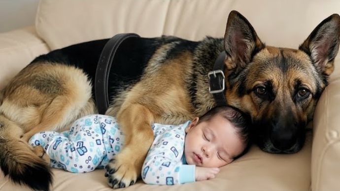 Anos depois, quando Noah deu os primeiros passos, Rex estava ali, ao lado dele — firme, orgulhoso, abanando a cauda devagar, como se soubesse que aquele era o momento pelo qual esperara.