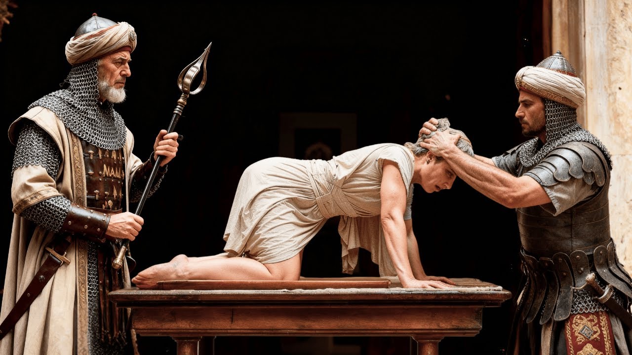 Três meses depois, Catherine estava naquela câmara subterrânea com outras 17 mulheres pressionadas contra paredes frias de calcário. Todas cristãs, todas capturadas durante a mesma campanha que apagou Acre do mapa. Todas esperando, esperando por um homem chamado Amir Tashimur para decidir seus destinos. Tashimur entrou pela porta central sem carregar armas.