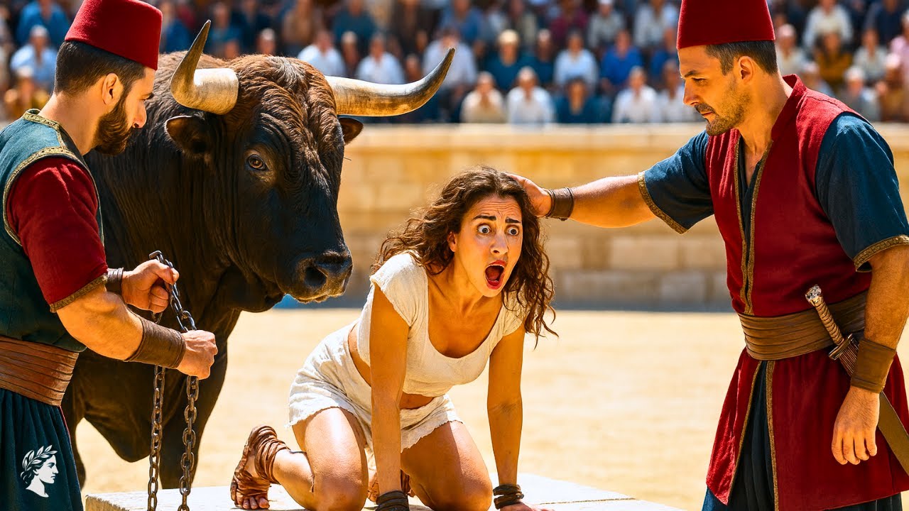 Os manipuladores mantêm o touro apenas perto o suficiente. Helena pode sentir a respiração dele em suas costas. Ela grita. O som corta a arena por um momento. Então é engolido pelo rugido da multidão. O touro não a toca. Nunca tocará. Esse nunca foi o plano. Minutos passam. Parecem horas. Os músculos de Helena tremem de tensão.
