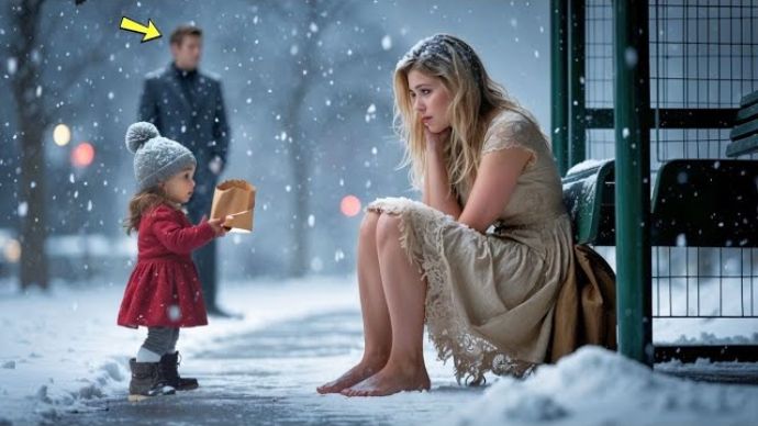 Atrás delas, um homem com um casaco escuro observava, a neve se acumulando em seus ombros. Ele não fez nenhum movimento para chamar a criança de volta. Margaret aceitou a sacola com mãos trêmulas. Dentro, havia biscoitos frescos de uma padaria próxima, ainda quentes. O cheiro sozinho trouxe lágrimas aos seus olhos. “Obrigada,” sussurrou. A garotinha inclinou a cabeça, considerando Margaret com uma sabedoria além de seus anos.