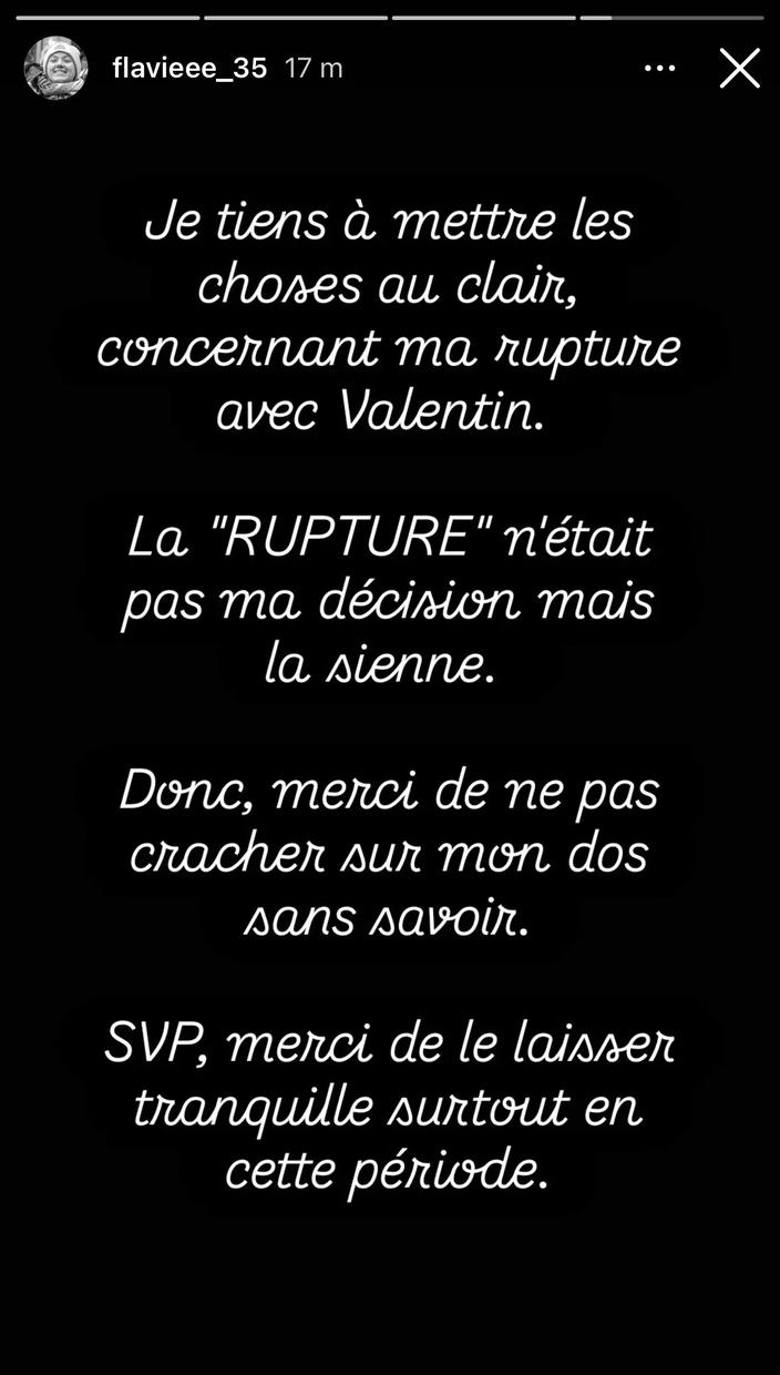 Flavie donne de nouvelles explications concernant sa rupture avec Valentin. Instagram : flavieee_35