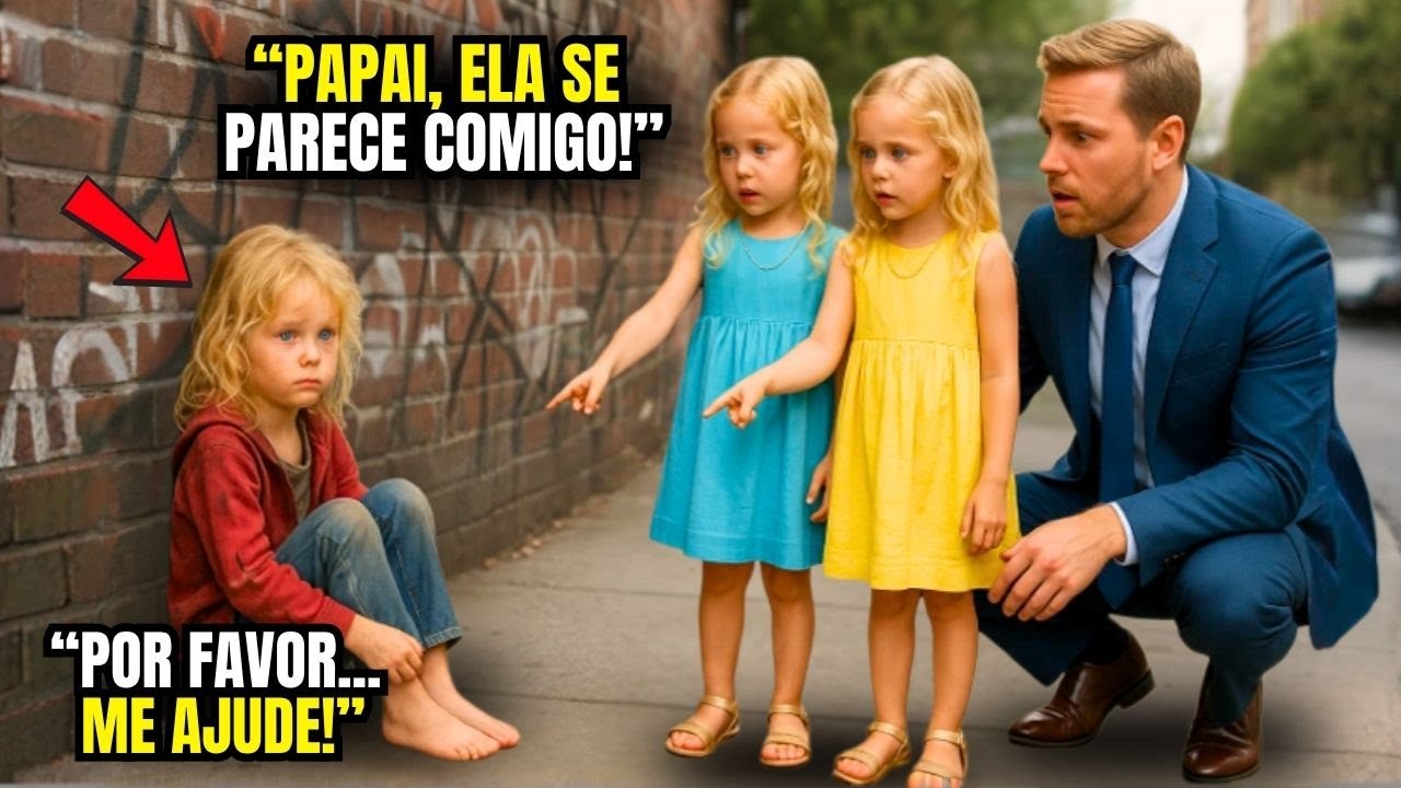 Ela é nossa irmã?”, perguntaram as gêmeas sem conseguir esconder o choque. O milionário ficou paralisado quando olhou para a menina suja, adormecida no chão do posto de gasolina. Ela era idêntica a suas filhas. Aquela semelhança absurda não podia ser coincidência. Era o início de uma verdade cruel escondida há anos.