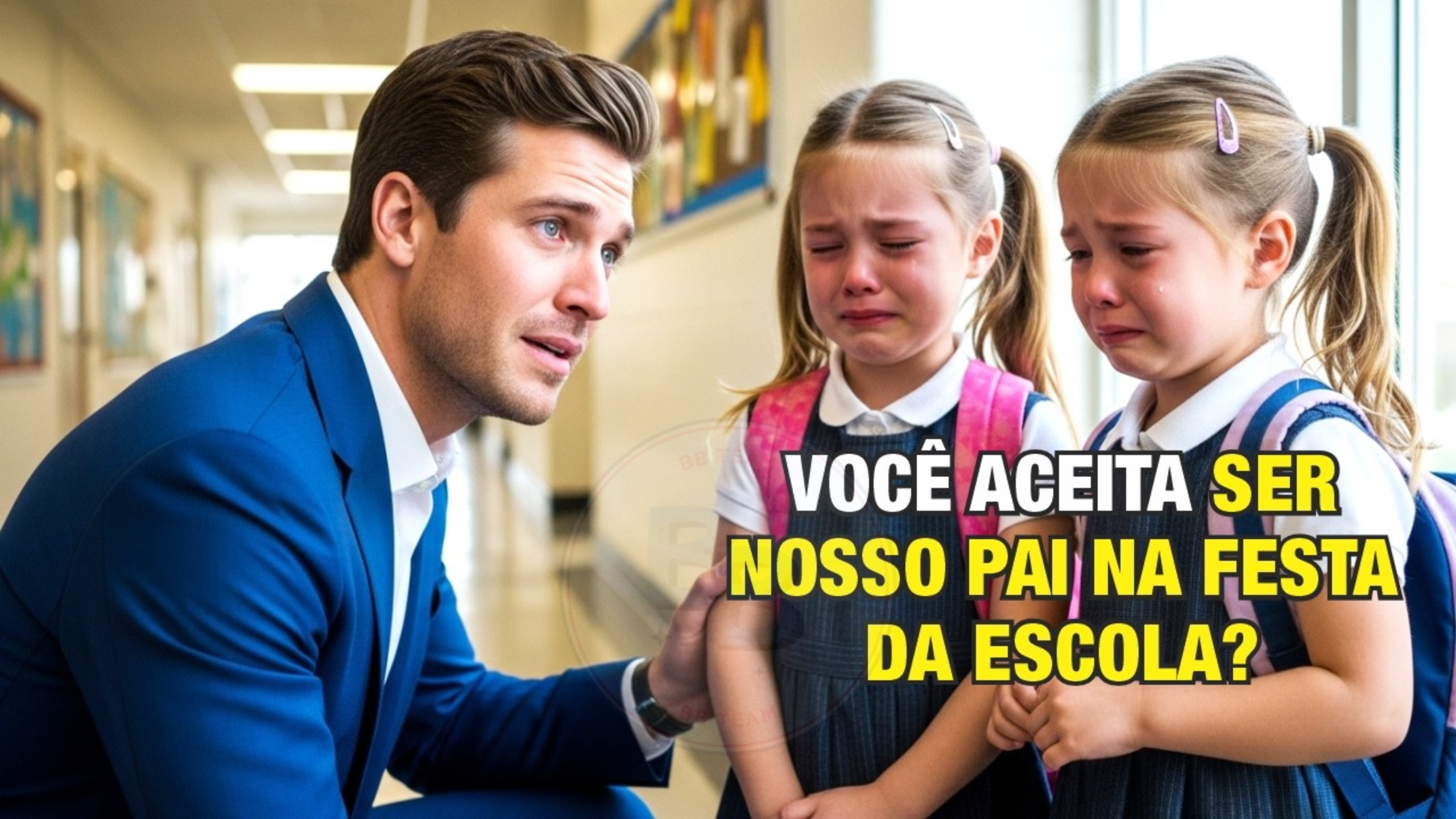 Gêmeas pobres fazem um pedido a um jovem milionário. Você aceita ser nosso pai na festa da escola? A resposta vai te surpreender. Na hora da saída, Bia e Clara esperavam no pátio da escola primária Raio de Sol. Enquanto as outras crianças corriam para seus pais e contavam animadas sobre a festa junina que fariam na sexta-feira, as gêmeas permaneciam sentadas no banco, quietas, balançando as pernas que mal tocavam o chão.