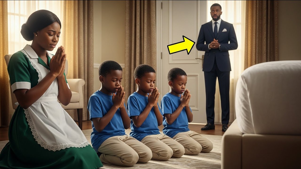 Três pequenas figuras estavam ajoelhadas no tapete. Três cabeças curvadas, seis pequenas mãos postas em oração. E ao lado deles, guiando-os com uma voz suave como a chuva de verão, estava Clara, a empregada. A mulher quieta, vinda de algum lugar do sul, que estava em sua casa havia apenas duas semanas.