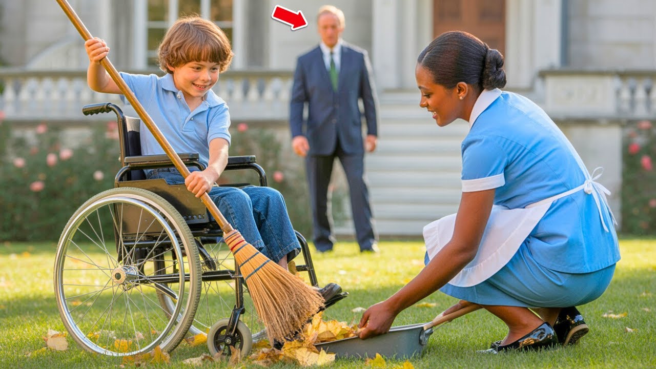 O milionário atravessou o portão de ferro em silêncio, guiado pelo som de risos que o levavam ao jardim. E então, ele gelou. Seu filho, frágil em sua cadeira de rodas, empurrava uma pequena vassoura com as mãos, enquanto a empregada recolhia folhas secas no chão. O que parecia uma cena inocente despertou em Eugenio Sánchez uma fúria cega. O que ele faria em seguida mudaria para sempre o destino daquela casa.