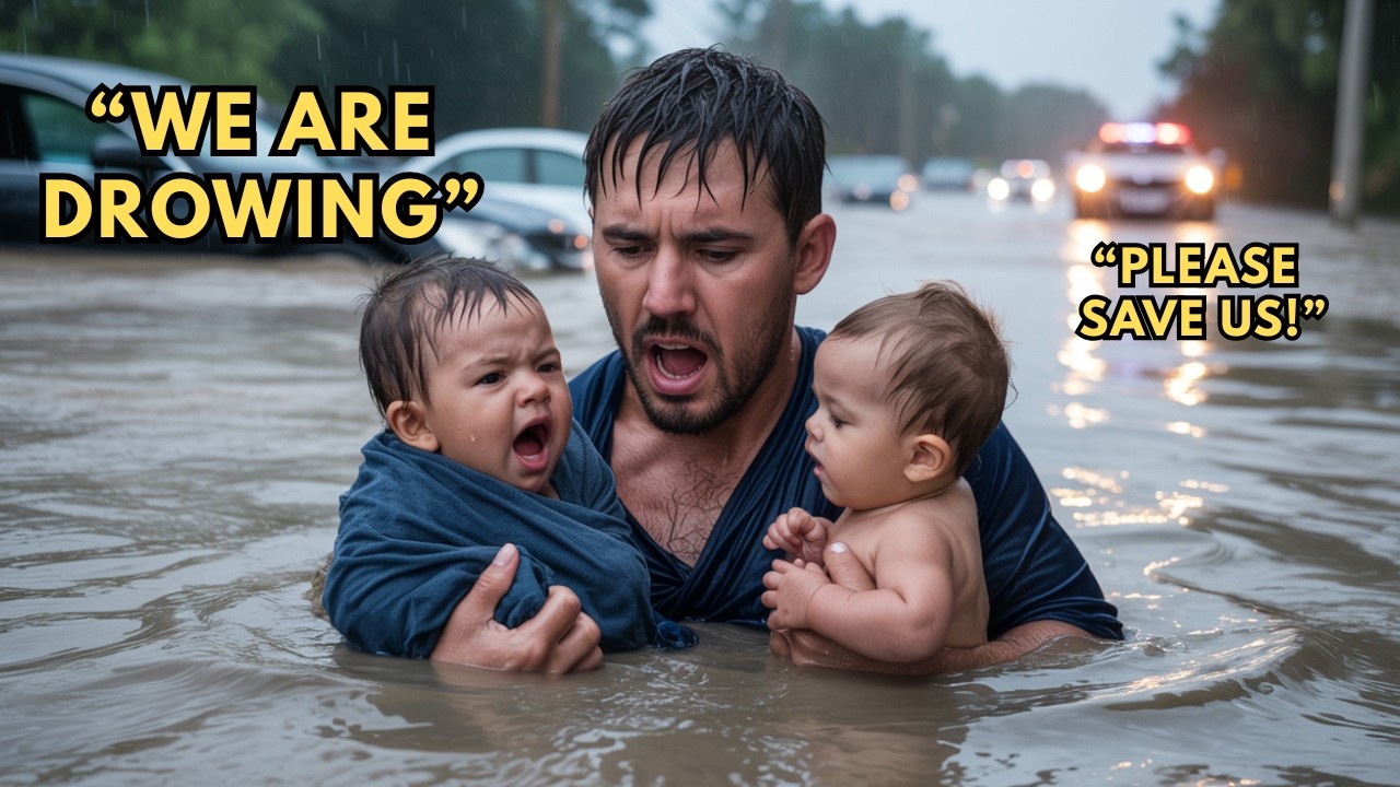 Duas crianças pequenas estavam presas em um carro que era arrastado pela fúria da enxurrada. O carro movia-se rápido em direção à rua principal, onde a água era ainda mais profunda. Marcus não pensou. Ele apenas agiu.