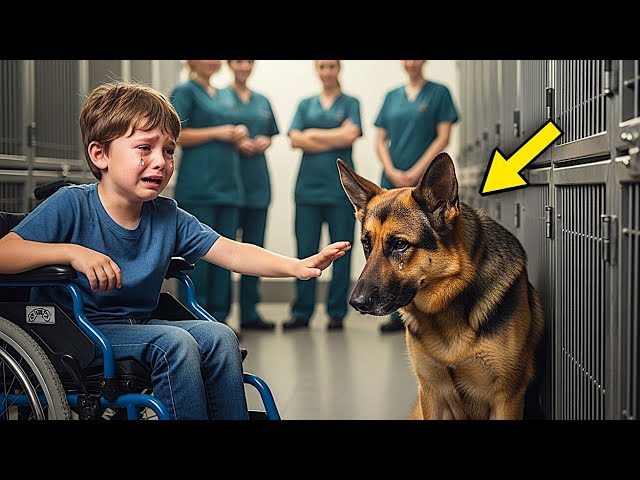 Alors que tout le monde restait silencieux, un bruit soudain brisa la tension. Un autre chien, plus grand, s’était échappé de sa cage et se précipitait dans le couloir. Les bénévoles coururent pour contrôler la situation, et dans le chaos qui suivit, le fauteuil roulant d’Ethan bascula en arrière. Les parents crièrent, mais avant qu’ils n’atteignent leur fils, le berger allemand bondit hors de sa cage.
