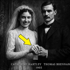 Esta fotografia de casamento de 1903 parece perfeitamente comum à primeira vista. Uma jovem noiva de branco, o seu orgulhoso marido ao seu…