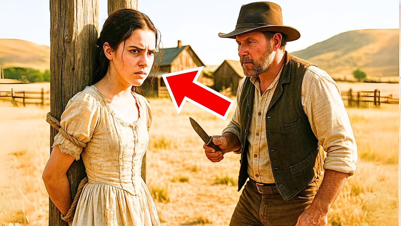 O que ele encontrou, ao contornar o riacho Miller, foi algo que lhe gelou o sangue: uma rapariga, talvez com 15 ou 16 anos, amarrada a um poste da cerca com corda grossa [00:50]. O seu vestido estava rasgado, os cabelos escuros emaranhados de sangue, mas os seus olhos, mesmo selvagens de terror, ardiam com uma fúria de gato encurralado [00:56].