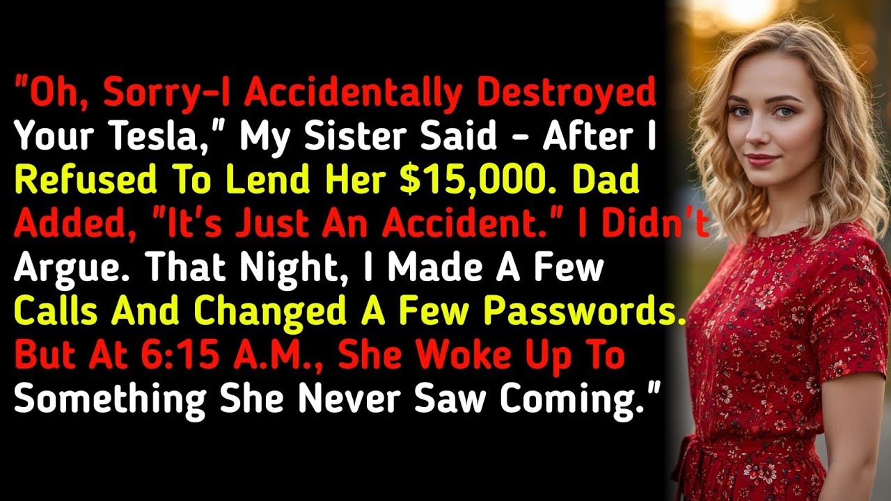 Quando saí depois do jantar e a vi encostada no carro de papai, girando as chaves do meu Tesla como um brinquedo, eu soube que ela tinha pegado sem pedir antes. Roupas, dinheiro, até namorados, quando éramos mais jovens. Mas isso era diferente. Pedi para ela colocar as chaves de volta. Ela sorriu, entrou no banco do motorista e acelerou para trás antes que eu pudesse me mover. O mundo desacelerou por um momento. O giro dos pneus, o estrondo contra a cascalho, o impacto. Então, silêncio, quebrado pela risada deliberada dela. A traição não estava apenas no acidente. Estava nos olhos dela quando me olhou, desafiando-me a fazer cena, sabendo que papai a protegeria. E ele fez. Eu não gritei. Não chorei. Apenas voltei para dentro, sentei na mesa e os deixei falar ao meu redor, como se eu não estivesse lá. Papai dizendo que o seguro cobraria. As desculpas falsas dela, recheadas de veneno. Eu acenei. Sorri uma vez, mas por dentro, algo se virou. Ela pensou que tinha vencido. Pensou que eu fosse ceder, engolir o custo, deixá-la se deliciar no caos que ela havia orquestrado. Mas vingança, vingança real, não vem em gritos ou socos. Vem quieta, como uma tempestade que você não vê até o primeiro raio rasgar o céu.