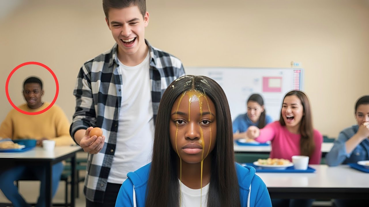 O refeitório congelou. A rapariga pobre levantou o olhar pela primeira vez, o ovo a escorrer-lhe pelo rosto, os olhos arregalados.