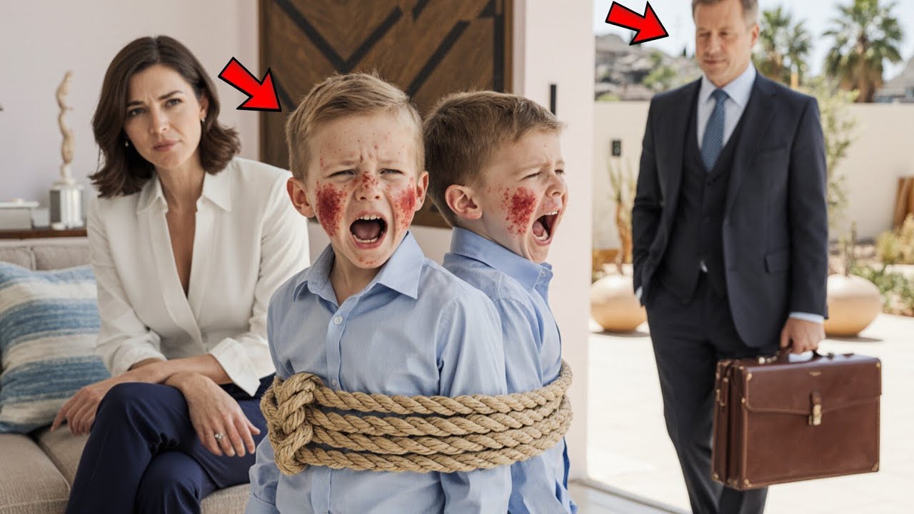 Ali, no centro do quarto, estavam seus meninos, amarrados juntos com uma corda grossa. Seus rostos estavam manchados de lágrimas e marcas vermelhas, os olhos arregalados de terror. Ao lado deles, sentada calmamente, estava a babá. Fria, seus olhos vazios de qualquer remorso.