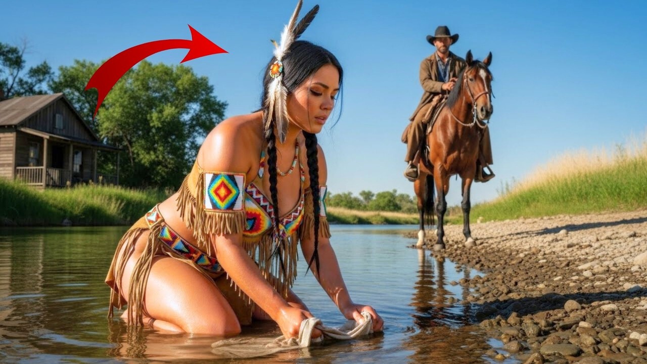 Uma mulher estava ajoelhada perto da margem do rio, inclinada sobre um pedaço rasgado de pele de veado que esfregava contra uma pedra lisa. Seus movimentos eram pequenos e trêmulos, cada esfregão feito com mais desespero do que força. O tecido tinha manchas de sangue secas e borradas que se recusavam a sair.