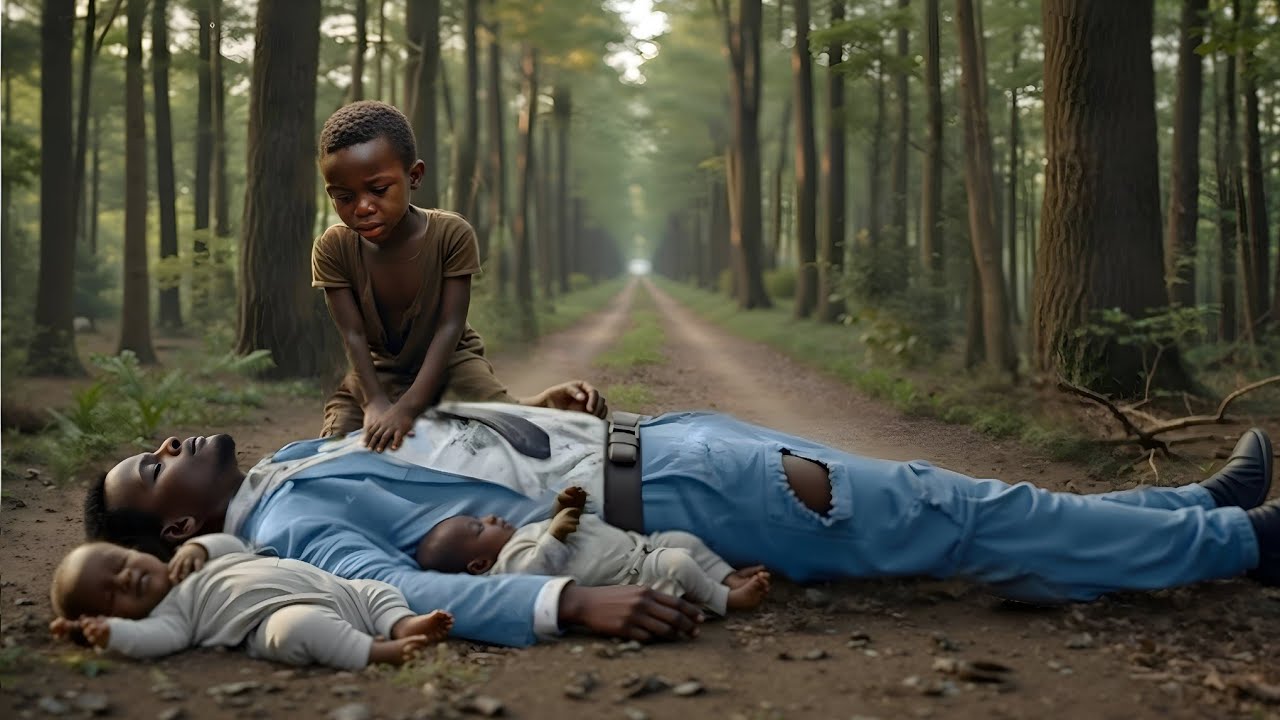 “SOCORRO!”, Kofi gritou. “Tem um homem! Ele não está respirando direito! Ele tem bebês com ele! Estamos na estrada da floresta! Por favor, rápido!”