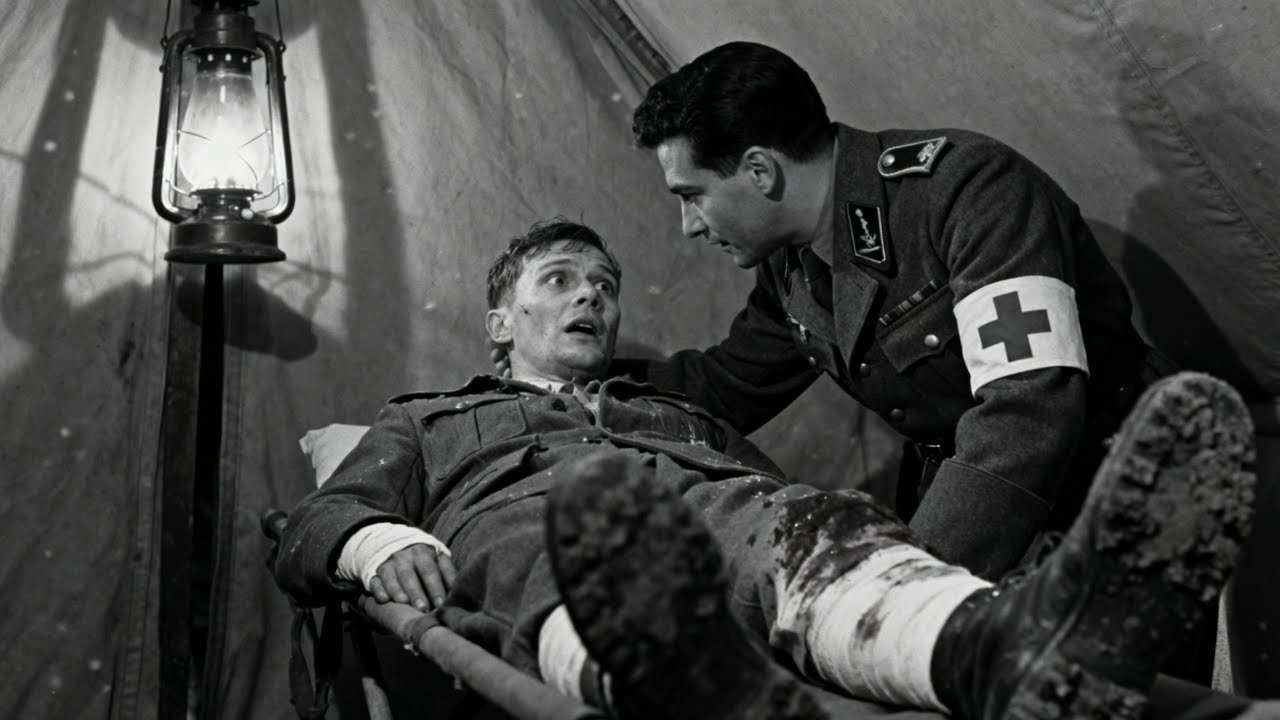 Lá fora, o eco distante da artilharia ainda vibra nas costelas dos pracinhas, mas ali dentro o som que define a noite é o do bisturi raspando nas bandejas metálicas e das botas correndo pelo chão de tábuas encharcadas. Oficiais aliados trazem as pressas um grupo de prisioneiros alemães esfacelados pelo combate, olhos arregalados, fardas rasgadas e esperam encontrar ódio, descaso, vingança silenciosa.