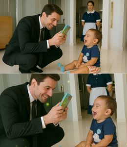 ” Júnior soltou mais uma gargalhada e tentou se levantar, apoiando-se na perna do homem. Neid ficou paralisada por alguns segundos, observando aquela interação impossível. O homem frio e distante que ela conhecia havia desaparecido, substituído por alguém que brincava com seu filho como se fosse a coisa mais natural do mundo. Frederico levantou os olhos e a viu parada na porta.