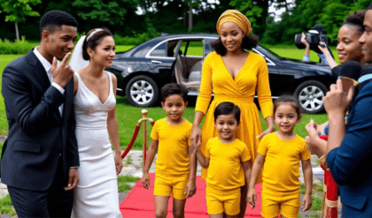 The bold frock was off-the-shoulder and featured billowing layers of ruffles on the top, a snatched waist and then an asymmetrical ruffled skirt.